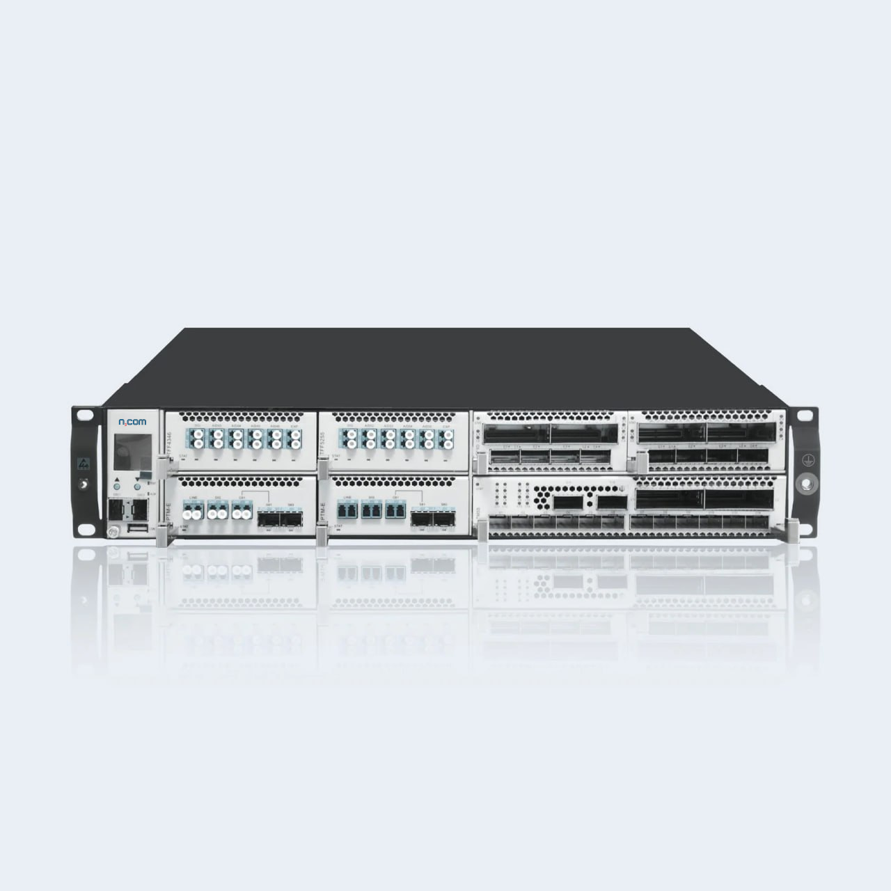 Шасси DWN7500 высотой всего 2U имеет стандартный 19-дюймовый форм-фактор, но содержит восемь слотов, которые можно заполнять транспондерами на 100/200/400G, мультиплексорами, усилителями EDFA и Raman, ROADM-модулями, узлами мониторинга OCM и OTDR. Резервирование питания и управляющих блоков, эффективный фронтальный обдув необходимы для работы в мощных центрах обработки данных (ЦОД) и на главных магистралях связи.
